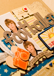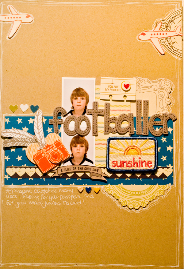 Firstly, I doodled around the edge of the cardstock, several times, before putting down my first matted layer and then I doodled around the edge of the layer, and each subsequent layer after that, as well as the hand cut elements from the papers. To add a touch of extra dimension that the accent stickers already gave, I added Glossy Accents to the heart on the camera sticker and the “you are my favourite” sticker. I also added a thin line of Glossy Accents over the stitched effect on the Thickers.