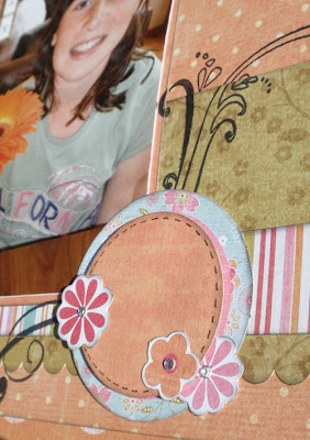 Use your die cut sheet to make your own embellshment, layer a die cut circle with one cut out of patterned paper using foam pads. Add some of the small die cut flowers to both the bottom and top layers sticking some bling at the centres.