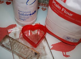 To make my salt dough, I used one cup of plain flour, one cup of salt and half a cup of warm water. This made about 15 decorations that are just over a centimeter thick. Simply mix the ingredients together in a bowl until it forms a dough.