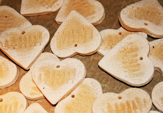 For my second batch, I used the tree stamps from American Crafts Campy Trails range, and a heart shaped cutter. The little pine trees all in a row were not only very cute but very seasonal!