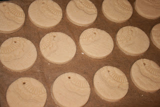 I rolled the lumps of dough onto a piece of hessian, which gave it a nice waffled texture which you can make out in the photo below. You could alternatively use some background stamps to make a nice textured base for your decorations (check out the Inlinkz collection for suggestions). I dusted the hessian with flour so that the dough was easy to peel off. I also used some rolling guides to ensure all my baubles would be the same thickness.