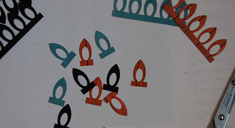 I punched several strips in black, orange and blue to match the colours of my son’s basketball, still using papers from On the bright side