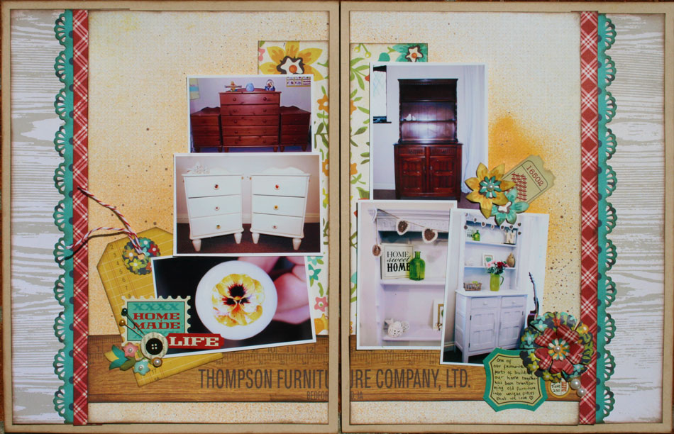 If you are anything like me, you’ll often get the idea for a project that requires more than just one scrapbook page. We’ve recently enjoyed renovating old furniture for our new home together, and I wanted to document the “befores and afters” but I had far too many pictures for just one page.