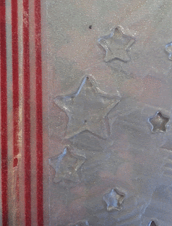 I misted a scrap of kraft card using the star mask. The concentrated band of colour at the bottom of the tag was card below the edge of the mask that wasn’t covered – I loved the contrast between the block of colour and the star pattern so decided to include it when I cut my tag shape, rather than trim it away. A quick strip of washi tape, a tin badge and wooden stars, and hey presto – a hand made tag in minutes.