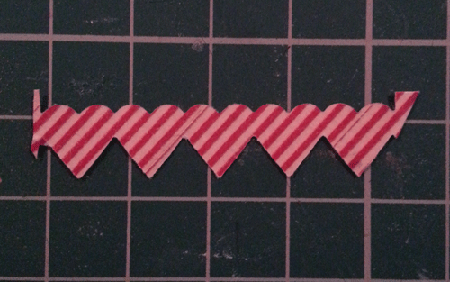 This gave me a strip of candy-cane striped hearts. I cut a few free from the chain with a small scissorsand added them at random to my original strip of Kraft hearts.
