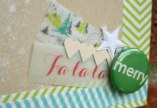 I plumped for the gorgeous Sleigh Ride vellum embellishments from Crate, a star mask and some tin badges from Studio Calico….and then, as you can see from the picture below, ever a slave to my patterned paper addiction, I crumbled when I saw the sweet “Rudolph” paper in the Crate collection!