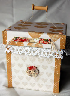 I chose the lovely Amy Tan papers to cover the box, along with some trim, MME enamel dots and decorative buttons