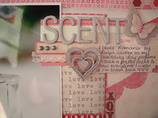 Having had a little boy, a lot of my pages now feature slightly more manly colour combinations, so sometimes I like to go back to my ‘pre-baby’ photo drawer and pick out something else to scrap! I relish the opportunity to do a girly page now & again, and our wedding photos are the perfect chance to do just that.
