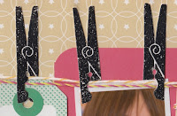 1. I had a washing line on my page so I next needed some pegs to go with it. Using a versamark pad, I stamped the image a few times onto some white cardstock. These were then covered with black Zing powder. I shook off the excess and used my heat gun to set the powders. Some pegs seemed to emboss better than others so I was glad to have a few to choose from.