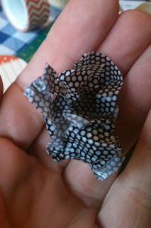 On this page I had originally placed the washi in a flat strip vertically on the right of the patterned paper. Usually you can pull washi tape off a page easily but I think I was a bit too vigorous with it and it ripped the paper. It turned out to be a happy accident though, as I liked the effect. I used the screwed up effect with the washi tape again – adding texture to this page too.