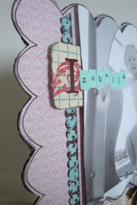 8. Once dried, you should have a fairly sturdy base to work with. You can now start decorating! Begin by laying your shaped photos onto the base, and trimming strips of co-ordinated patterned paper to fit the straight edge of your photos. Sticking the photos down with foam pads adds even more depth.9. Add letter or word stickers to look like tags coming from under the photos.