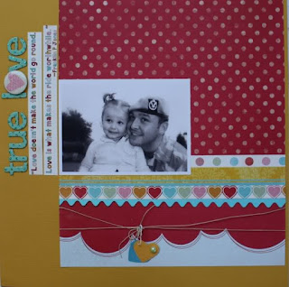 “I really wanted to use the quote that was on the Strips paper so I designed my page around it, to add some extra detail I added some twine around the bottom of the page and attached two little hearts. The Pink Pailsee metal badge was perfect to use as the O in title.”