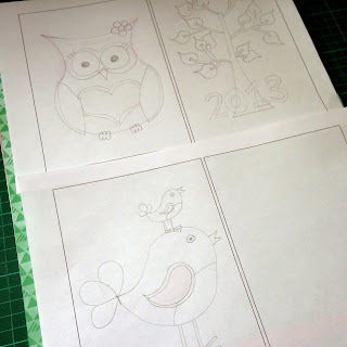 I have created a set of three pictures to go up in her room, using scrapbooking supplies from the shop. I started off by sketching out a rough design onto a 7×5″ area. As you can see I have made a few small changes from the original sketch, but this gave me something to start from. There’s a big wall mural in her room which is a tree featuring birds and owls, so the choice of icons was easy, and I took inspiration from the shapes found there and from some clip art and appliqué designs found on a google image search (search for something like owl outline or owl colouring in page to get good results).