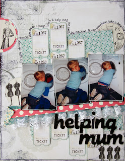 The second LO I have to share with you, is a quick and easy peasy one to put together. I used strips of tickets to create a photo mat rather than using them individually like I usually do.