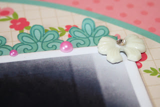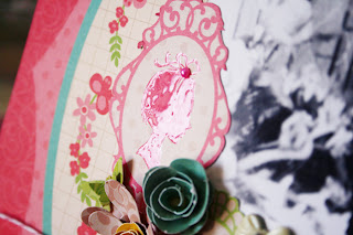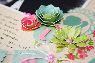 I couldn’t wait to use the flowers on a page, so together with some of the matching Audrey papers, created this: