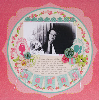 I decided to use the beautiful Audrey line to create a page; the feminine colours and bow motifs were a perfect match for an old photo of my Grandmother that I’d received the very same week as my goodies arrived.