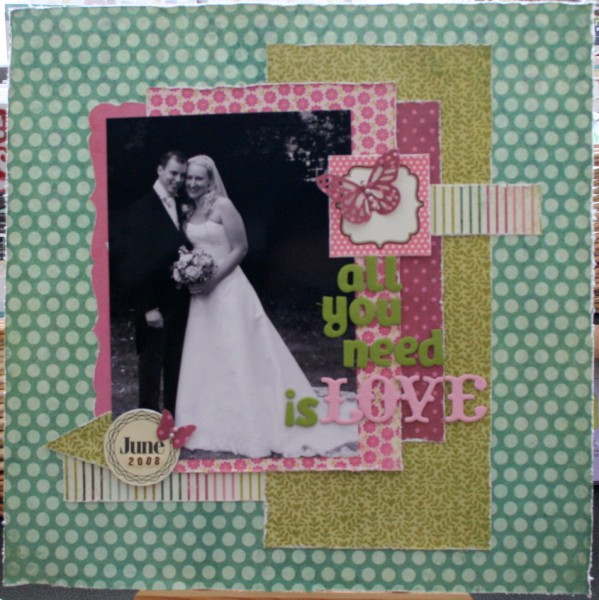 As always the design team have been busy creating some example pages using Rachel’s sketch and were joined by last months winner Lesley. She has created this gorgeous layout using Prima Strawberry Kisses papers.