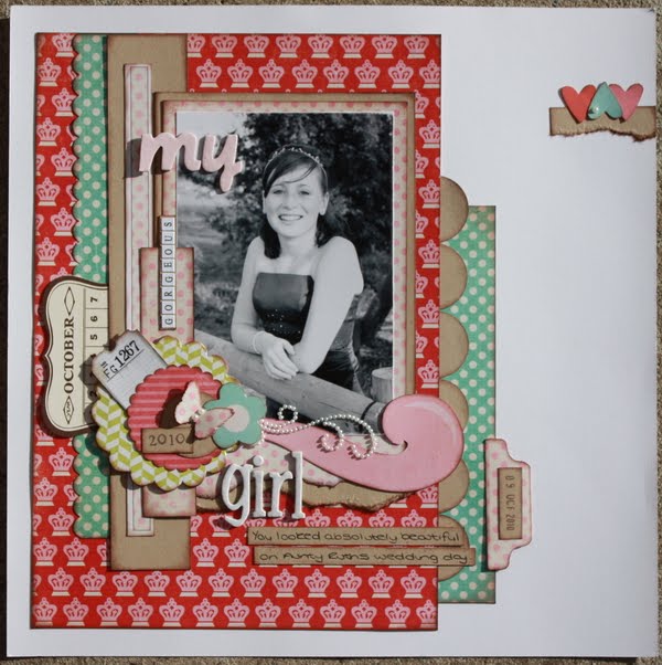 Last months challenge was won by Anna who has created this gorgeous page using October Afternoon and Cosmo Cricket papers.