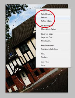 Right click on your photo, and select “feather” from the pop up menu: