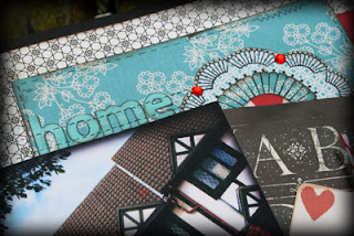 I used a Prima Marketing doily stamp on a couple of the patterned papers, cutting it at different sections and layering them on top of each other to create the circular embellishment you can see in the photo below.