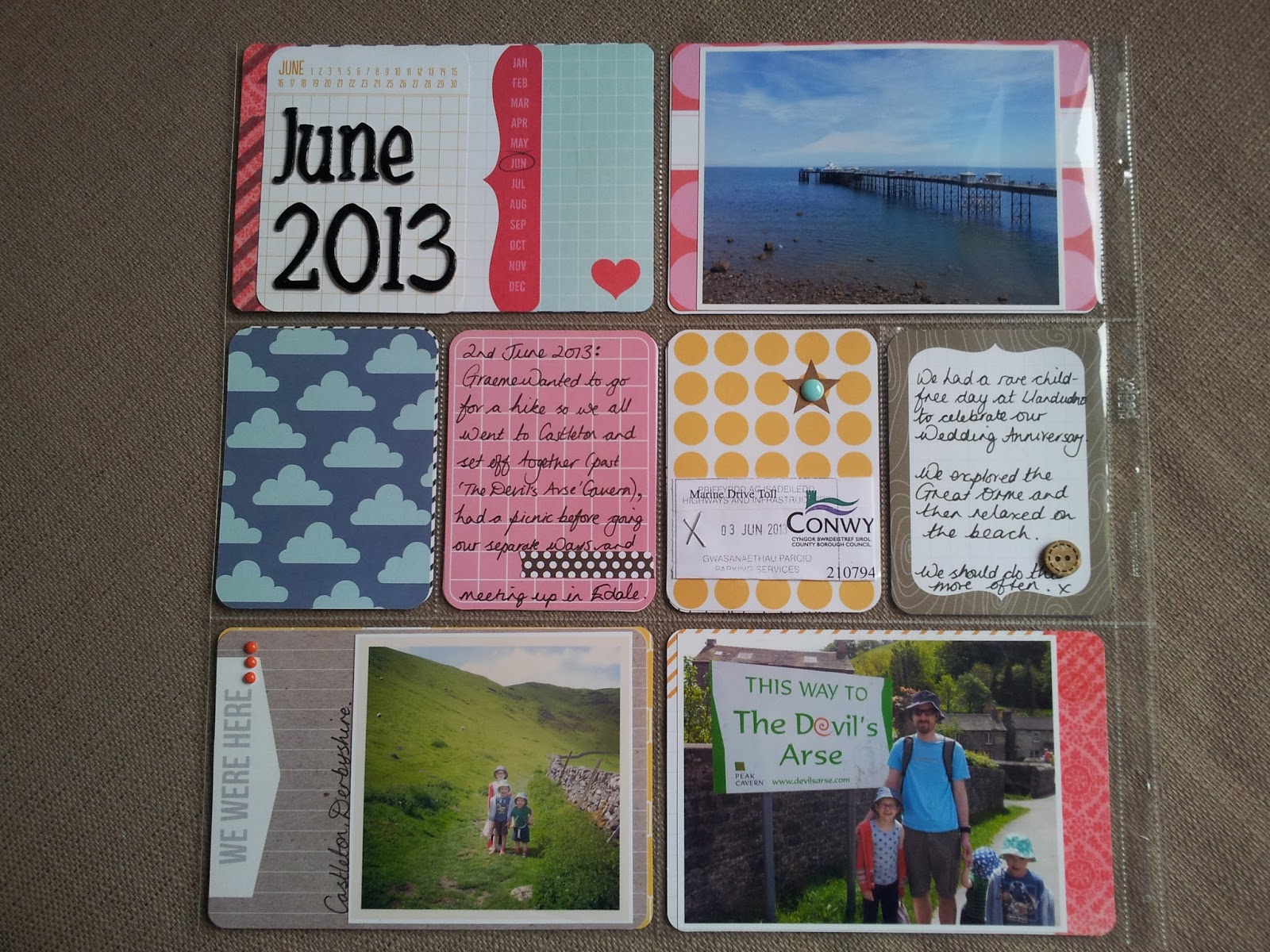 The idea behind the cards is that it speeds up the recording process. In its simplest form, you print photos, choose some cards and pop them in the slots in the page protectors and maybe add some journaling. That is how I started my pages. I didn’t leave it there though; I used that as my base and then got creative and embellished the cards and photos using all sorts of things from my stash. All of my journaling was handwritten which did help with keeping it quick and simple to do as well as making it more personal.