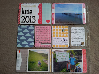 I looked through all of the cards choosing ones that matched the photos/themes and colours. I mixed and matched cards from all of the kits that I bought (Jade, Midnight, Honey, Seasons & Wellington). Some were purely used as ‘decorative fillers’ whilst some allowed specific journaling.
