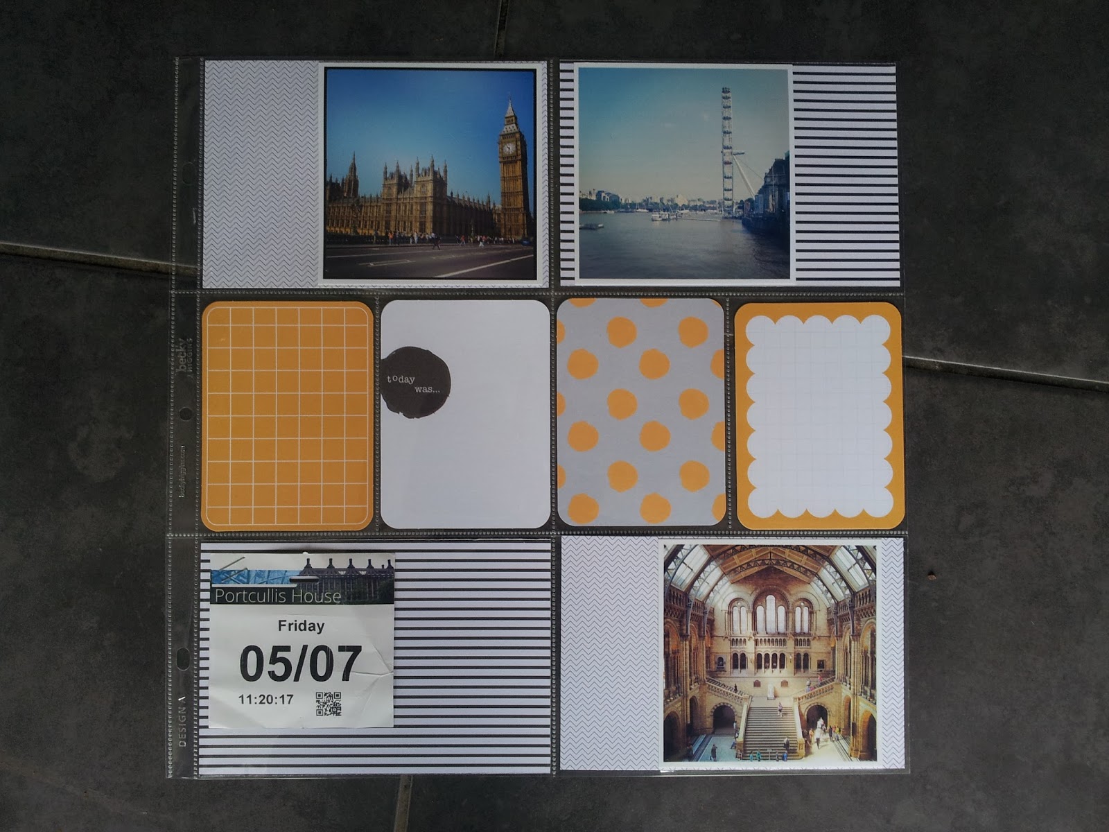 In a couple of places, you may have noticed that I cut and split both photos and cards across the pockets in the divided protectors. This allowed me to make things fit with my overall design of each page. I’ve also layered some of the smaller 3×4 cards on top of the bigger 6×4 cards too to add to the overall effect/look of a layout.