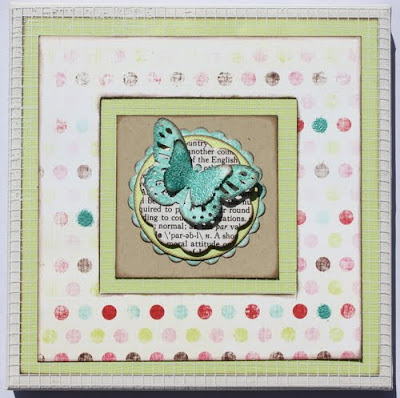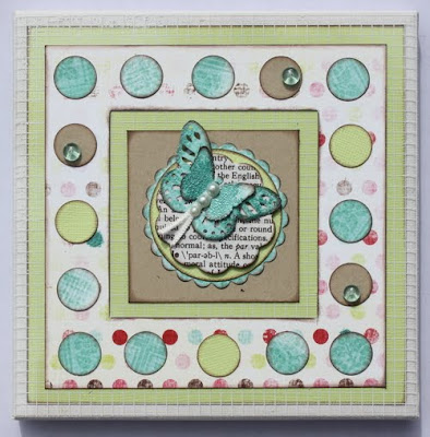 Punch some small circles out of the papers that you have used on your canvas and stick them around your frame adding a few dew drops to finish off.