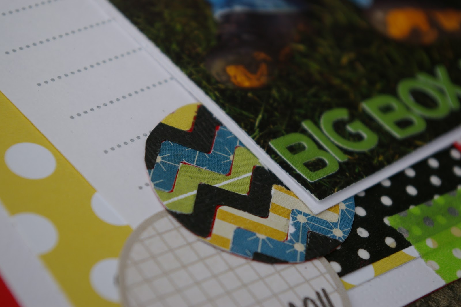 At the bottom edge of my LO I punched once through the layers of card and tape, and decided to leave it just like that. I really like this little area of detail.